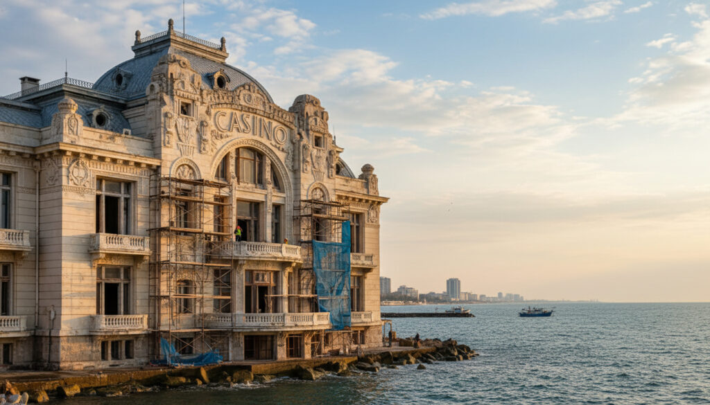 Constanta Casino ligger på havnefronten i Constanța, Romania, og ble opprinnelig reist som et trebygg i 1880. Dagens bygning, designet av Daniel Renard i art nouveau-stil, stod ferdig i 1910 og kostet 1,3 millioner lei. Kasinoet har vært vitne til viktige hendelser, som besøk av den russiske keiserfamilien i 1914, granatangrep under første verdenskrig og bruk som sykehus i den andre. Under kommunisttiden tjente bygget som restaurant før det ble forlatt i 1990 og forfalt i flere tiår. Siste store reparasjoner var mellom 1986 og 1988. For mer historisk kontekst finnes det bred anerkjent informasjon fra Constanța Casino på Wikipedia.
