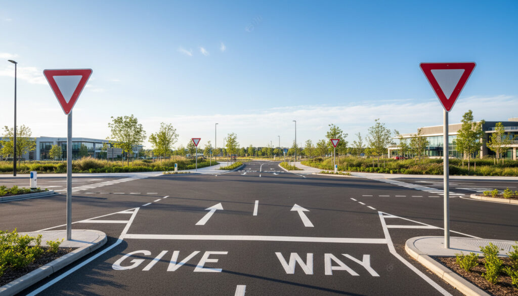 Skiltbasert vikeplikt gir tydeligere førervarsel enn høyreregelen, men krever korrekt plassering og synlighet. Vikepliktsmerket, en hvit likesidet trekant med rød kant, plasseres normalt i høyre side av kjørebanen, mens stoppskiltet, en rød åttekant, krever full stans før innkjøring i krysset.